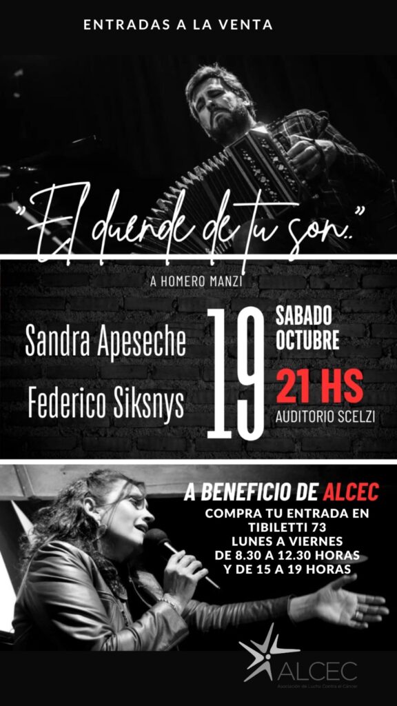 El sábado 19 de octubre, se presentan en Concepción del Uruguay, Sandra Apeseche y Federico Siksnys, con el espectáculo «El duende de tu son» homenaje a Homero Manzi.