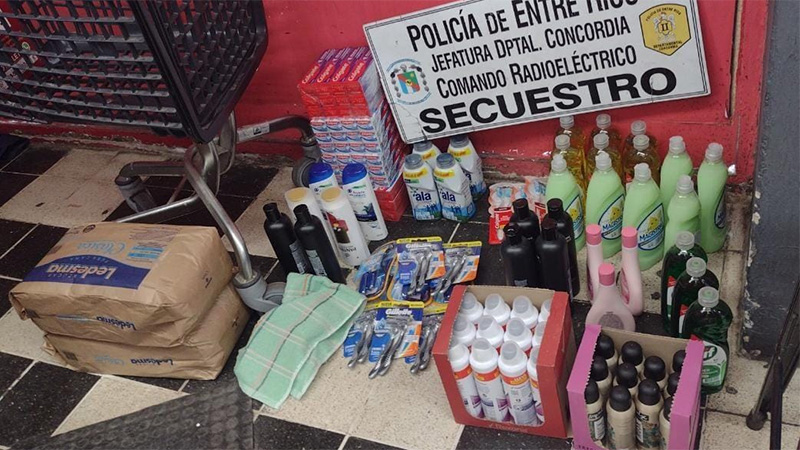 Finalmente se logró la aprehensión del sujeto y el secuestro de un carrito de supermercado conteniendo varios packs de azúcar de 10 kilos, pastas dentales, jabones líquidos concentrado, desodorantes en aerosol, cremas de manos, detergentes, máquinas de afeitar y shampoos.