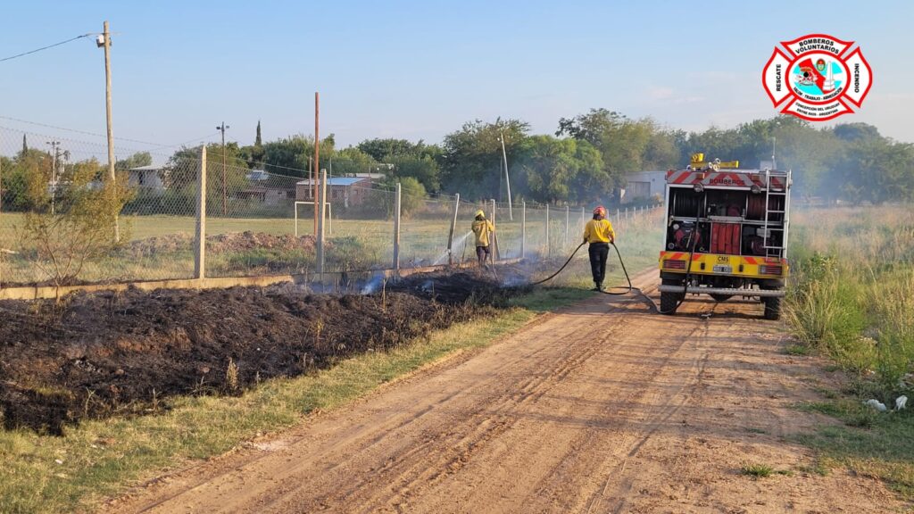 A las 18:21 horas, Bomberos fueron requeridos por un incendio de pastizales atrás de la cancha del Club Atlético Engranaje.