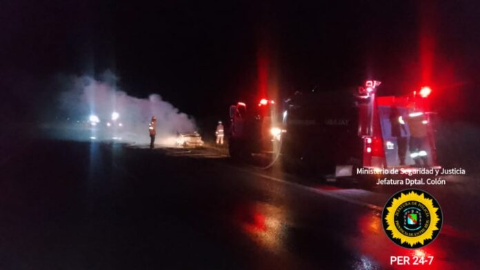 En la madrugada de hoy, personal policial inició actuaciones tras el incendio de un vehículo en el kilómetro 211 de la Autovía José Gervasio Artigas.