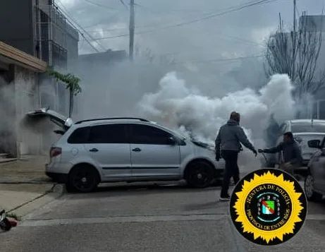 El hecho se registró alrededor de las 12:00 horas, cuando personal del Comando Radioeléctrico se percató de un foco ígneo en un domicilio de J.J. Rizzo y Alberdi. En el lugar, un automóvil Volkswagen Suran de color gris se encontraba en llamas.