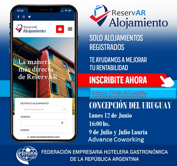 La Federación Empresaria Hotelera Gastronómica de la República Argentina presentó la plataforma de reserva de alojamientos registrados en Concepción del Uruguay. Es una aplicación hecha por y para empresarios. La misma no tiene costos.
