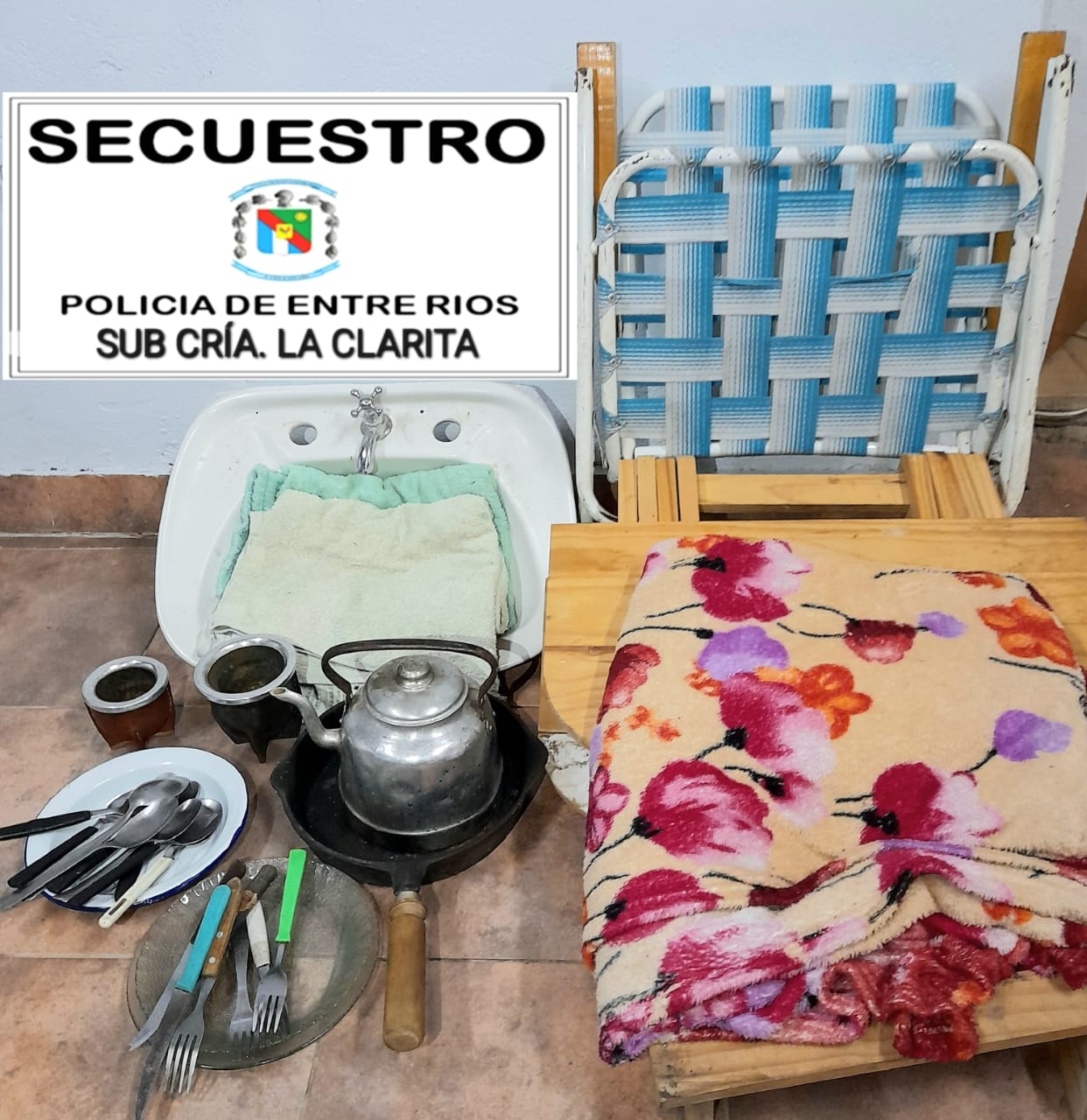 Personal policial de La Clarita secuestró elementos que habían sido denunciados como robados por una mujer. Los mismos eran una pileta lavatoria, elementos de cocina, una mesa desplegable de pino, toallones y un sillón playero.