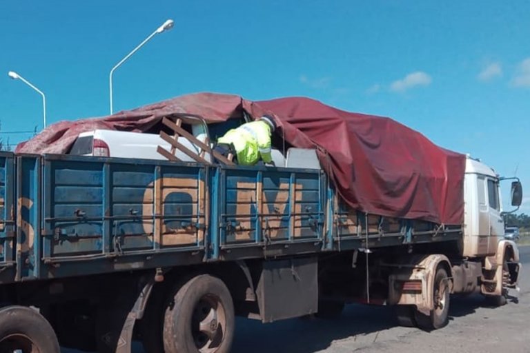 Una camioneta con adulteraciones fue encontrada en el acoplado de un camión Mercedes Benz durante un control vehicular en la caminera de Paso Cerrito, a la altura del kilómetro 341 de la Autovía Artigas.