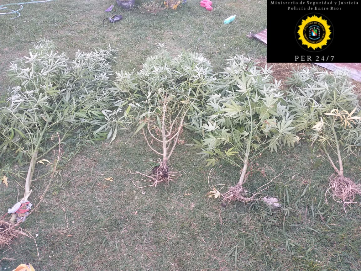 Tras realizar una requisa en la totalidad de la vivienda no se hallaron elementos que tengan relación a la causa investigada, pero si se logró encontrar cinco plantas de marihuana que van desde los 90 centímetros hasta los 2,35 mts de altura, lo que derivó en la intervención de personal de la Delegación de Toxicología, quienes realizaron los correspondientes test orientativos, confirmado categóricamente que se trataría de la especie cannabis sativa.