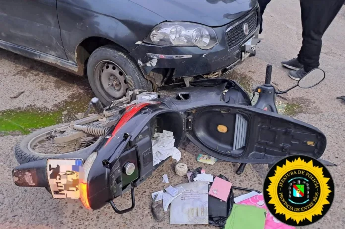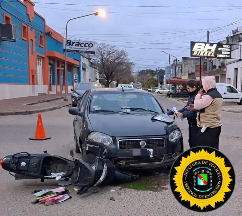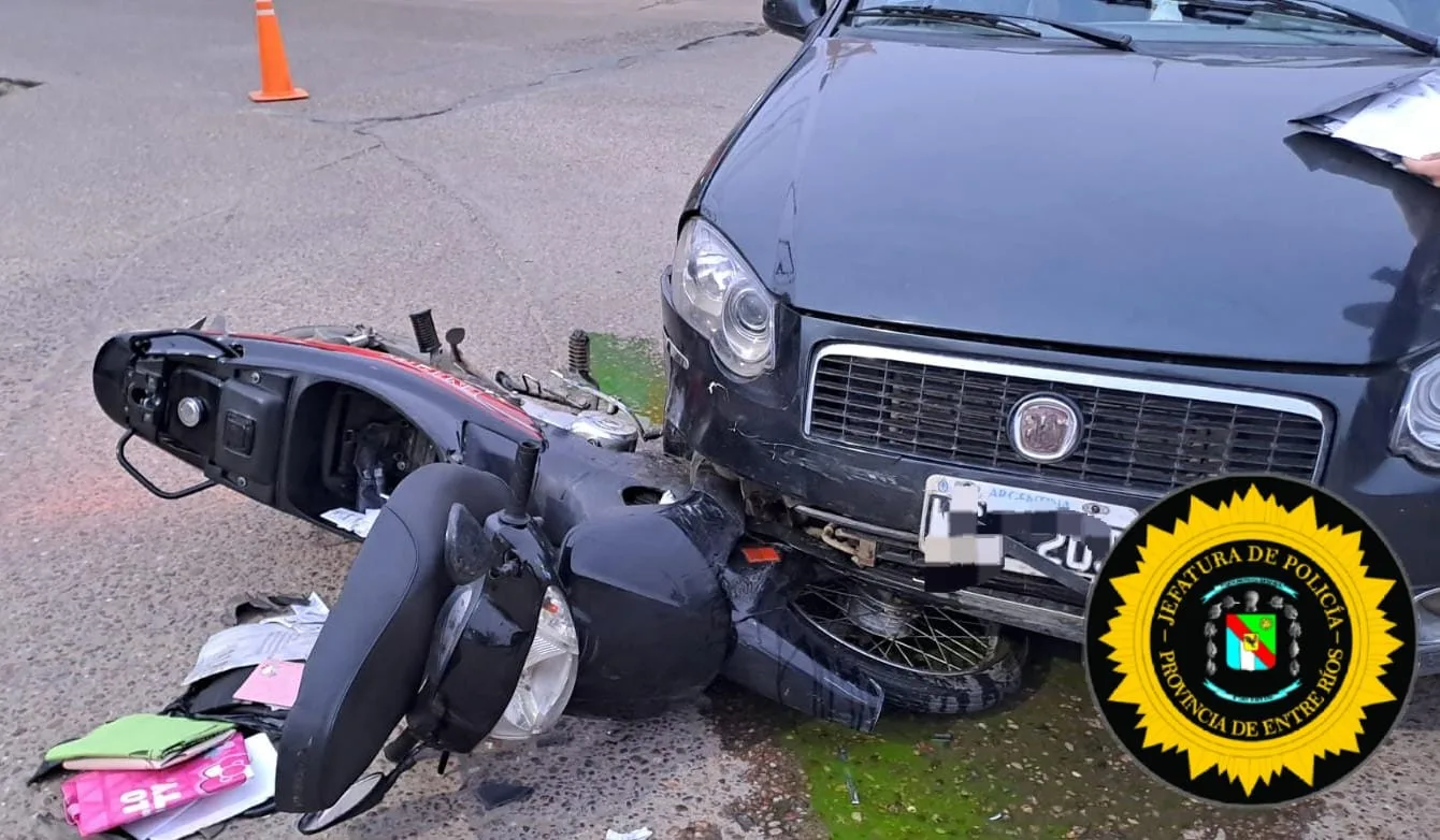 El siniestro vial involucró una motocicleta Corven negra, conducida por la mujer de 36 años, quien circulaba por calle Galarza de este a oeste. El otro vehículo, un Fiat Siena negro, era conducido por un hombre de 54 años, que transitaba por Isaías Torres de sur a norte.