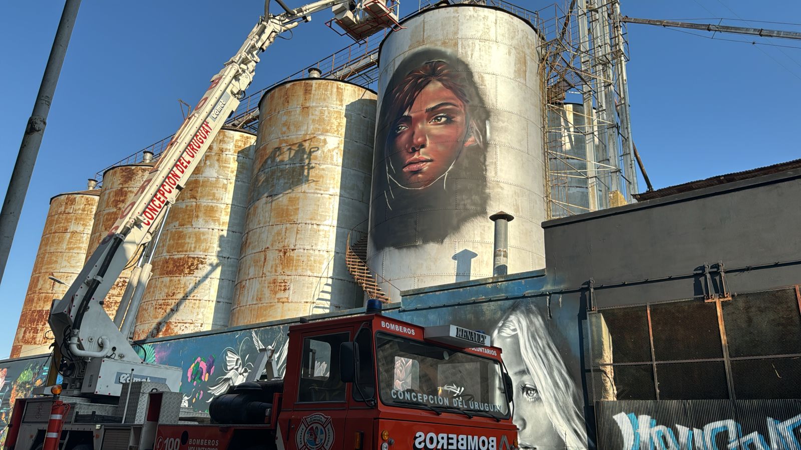 El URUGRAFF 2024 tiene una particularidad, ya que por primera vez se está realizando un mural en alturas. Se trata de uno de los silos ubicados sobre calle Galarza; allí, montada en una grúa de Bomberos, la obra es realizada por la uruguaya Verónica Gazzarata, conocida en el mundo del graffiti como Min8. Habiendo participado de todas las ediciones realizadas en nuestra ciudad, la artista definió como “un reto al hecho de pintar en alturas, que incluye ciertas medidas de seguridad, pero cuanto más grande es el reto, mayor es la recompensa”. Pintar en altura “es algo que quedó pendiente desde la primera edición, en el año 2016, y por suerte ahora se pudo concretar”, expresó Min8. Además, detalló que es la obra más alta hecha por ella, llegando en esta oportunidad a los 15 metros aproximadamente. Para el patrimonio graffitero de Concepción del Uruguay quedará un mural que muestra “una mujer rodeada de naturaleza; detrás de lo urbano y el metal del silo aparece la naturaleza”.