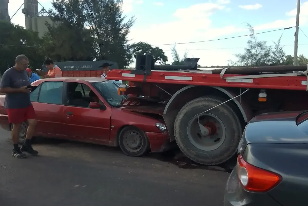 Un automóvil Peugeot 306 se incrustó en la parte trasera de un camión marca Mercedes Benz en J.J Bruno y 35 del Oeste, frente a Molino Piensos, a las 16:40 de este martes.