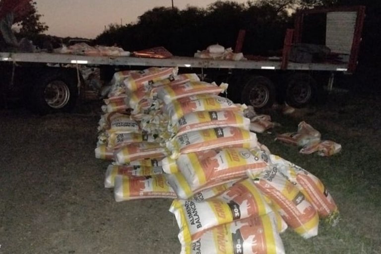 El siniestro vial ocurrió en el kilómetro 13 de la Ruta Provincial Nro. 20, al norte de Federal. El rodado volcó el acoplado cargado con mil bolsas de alimento balanceado de 30 kilos cada una.