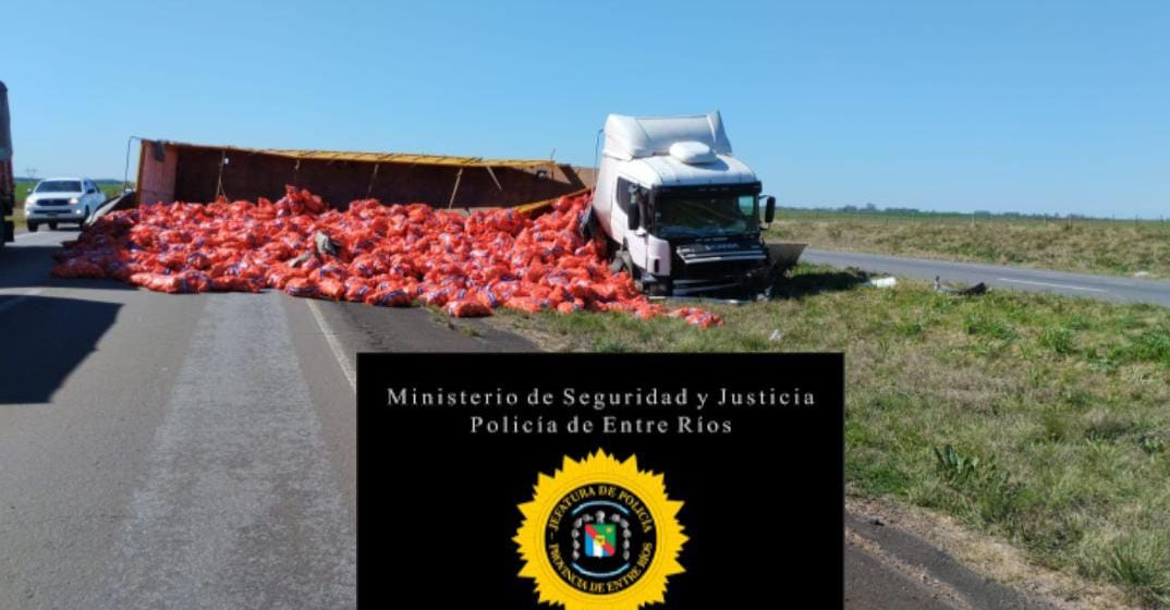 Según el reporte policial, el camión circulaba de Norte a Sur y sufrió una falla mecánica que provocó que el conductor perdiera el control y saliera de la calzada hacia la banquina Oeste tras cruzar el cantero central. Luego de detener la marcha parte de la carga de cebollas se desparramó sobre el corredor vial.