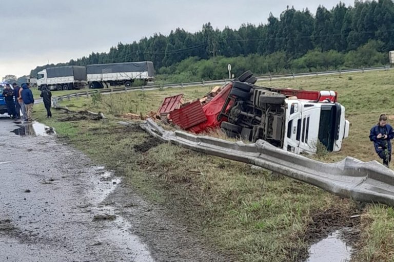 En el lugar se hizo presente personal policial de la Comisaría N° 23 Suburbio de la Jefatura Departamental Federación. Los uniformados constataron que un camión marca Fiat Iveco, cargado con un acoplado con cajones de citrus vacío, despistó hacia la banquina derecha y volcó sobre uno de sus laterales.