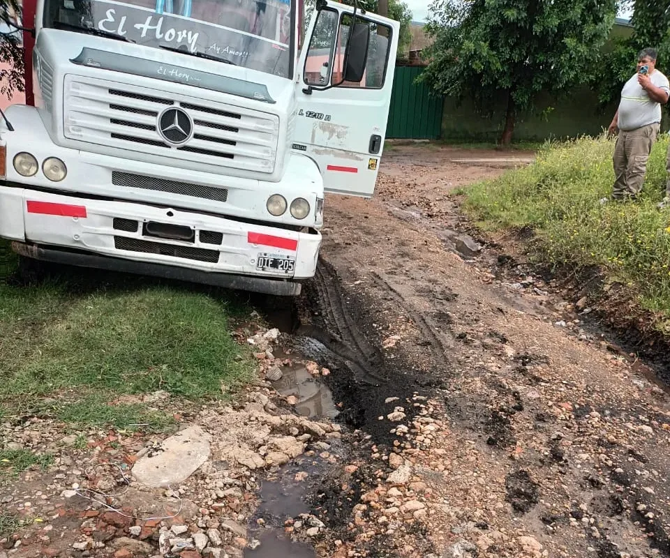 Un camión quedó empantanado en inmediaciones de Lacava y calle Unidad del barrio 96 Viviendas de ATE «Germán Abdala» luego de las lluvias de la madrugada de este viernes. Según indicaron los vecinos a La Pirámide, se han realizado reclamos «en varias oportunidades» pero no tienen respuestas.