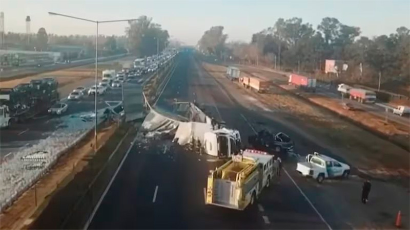 Según informó el sitio Infobae, pasadas las 13 quedaron dos carriles liberados en dirección a la ciudad de Rosario, en tanto que la mano a Capital Federal todavía continuaba totalmente cortada.