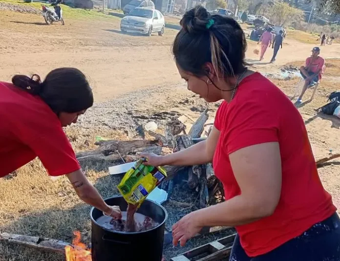 Miembros de la Asociación Civil Inclusión Laboral y Social para todos preparó 12 litros de leche chocolatada y galletitas dulces para personas del barrio La Escondida, ExDifunta Correa.