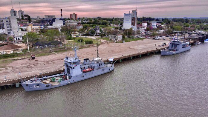 Para la ceremonia de relevo de las embarcaciones, estuvieron en el puerto de Concepción del Uruguay autoridades de la Armada Argentina, de CARU, y del Puerto de Concepción del Uruguay.