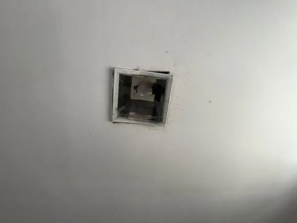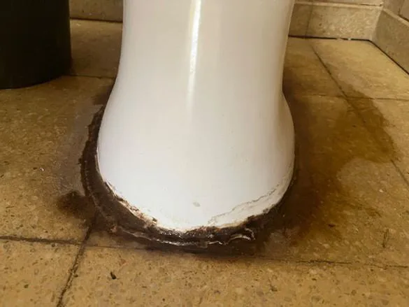 En las fotos pueden observarse la faltante de accesorios en los sanitarios y en las luminarias, como así también agua y suciedad en los pisos.