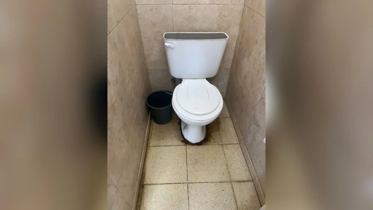En las fotos pueden observarse la faltante de accesorios en los sanitarios y en las luminarias, como así también agua y suciedad en los pisos.