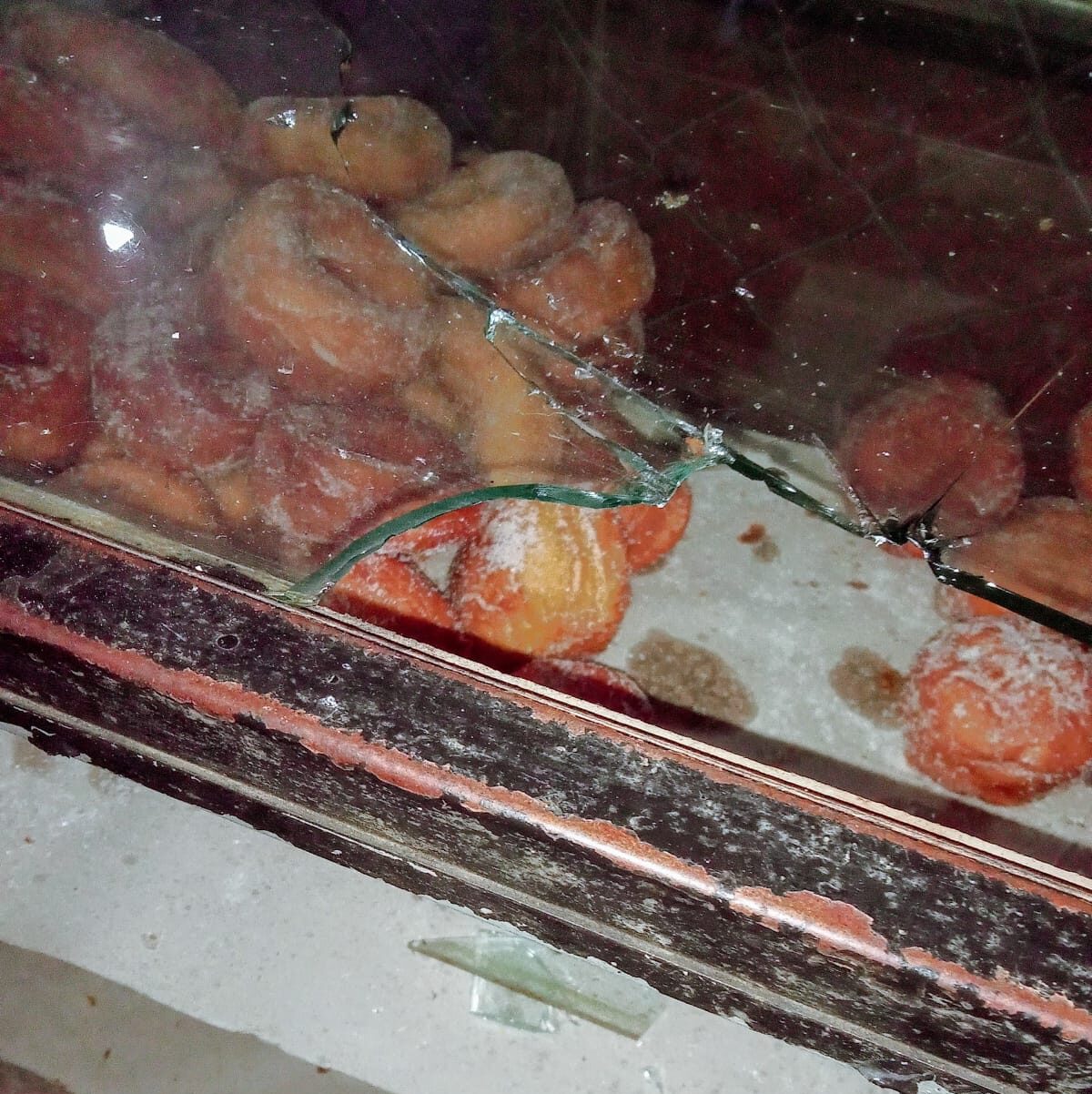 De este modo, la mujer indicó que las masas que estaban a la venta se perdieron ya que las astillas y trozos de vidrio cayeron sobre las preparaciones.