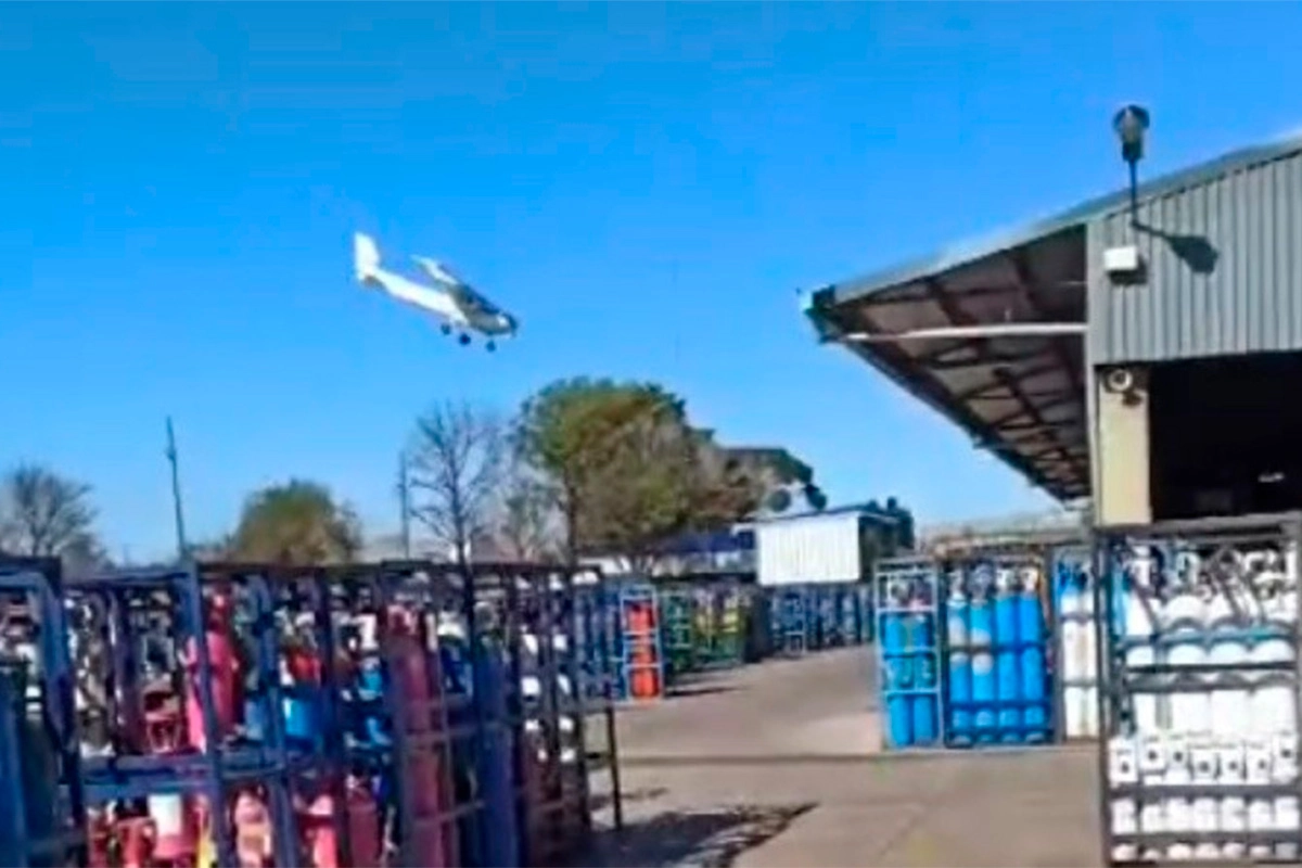Por redes sociales circula un video de un usuario que muestra el momento del impacto de la avioneta sobre el techo de uno de los galpones donde había almacenadas garrafas de oxígeno medicinal.
