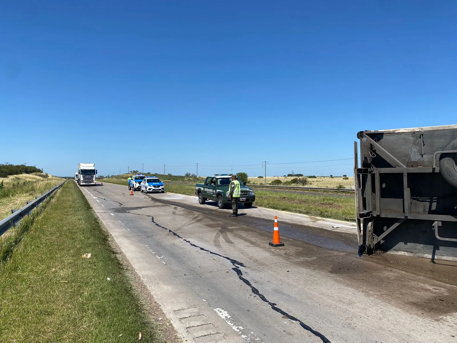 Este jueves cerca de las 10hs. un camión volcó su carga de papas fritas sobre la cinta asfáltica del kilómetro 71 de la Autovía 14 mano norte-sur.