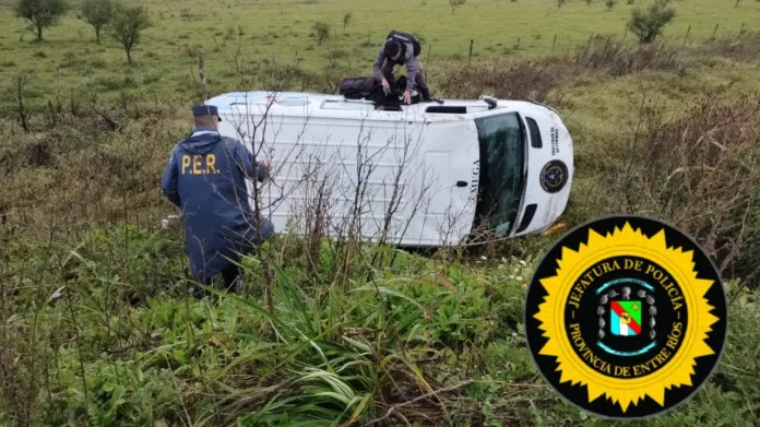 El vehículo, que transportaba a un interno y sus respectivos custodios hacia la Unidad Penal de la ciudad de Victoria, perdió el control al pasar sobre un espejo de agua, lo que provocó que el móvil volcara sobre el lado sur de la ruta.
