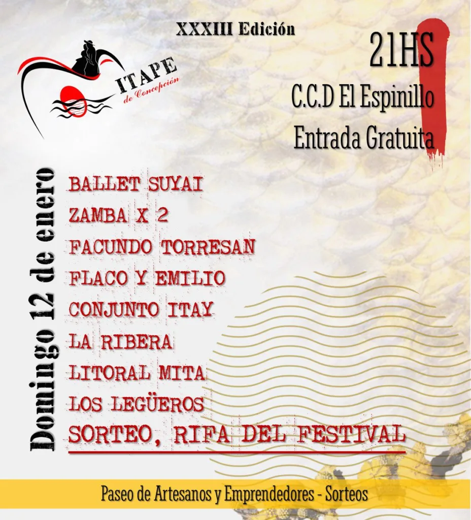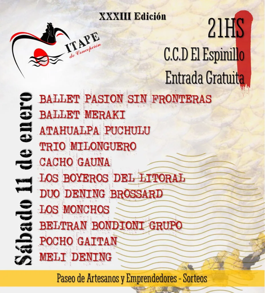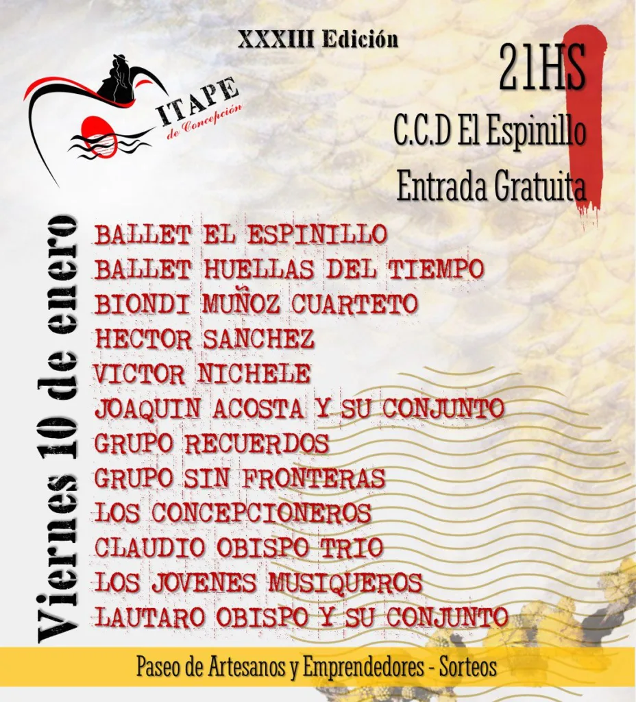 Este viernes 10, sábado 11 y domingo 12 de enero en El Espinillo, se realizará una nueva edición del tradicional Itapé de Concepción con mucho baile y música folclórica.